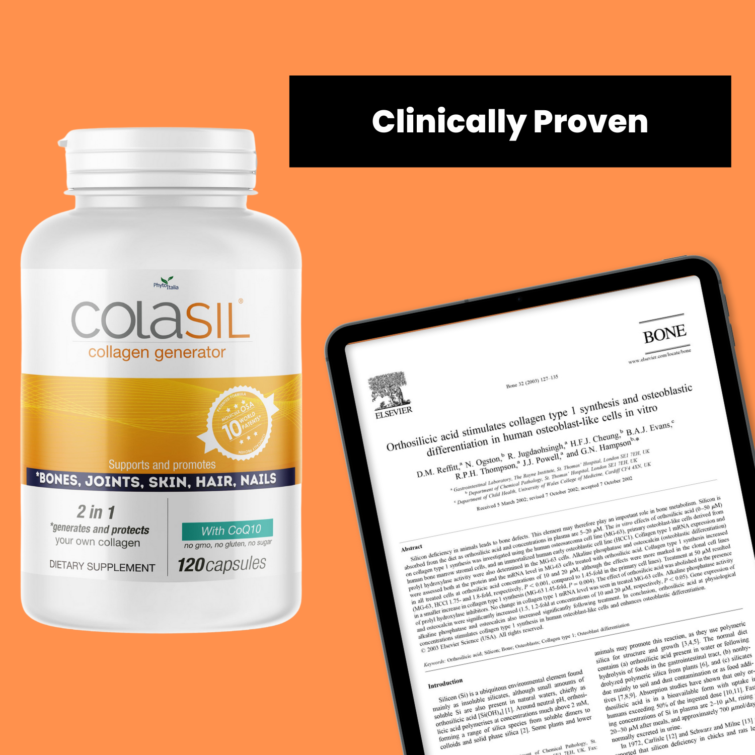 Our Organic Silicon is responsible for making your body generate its own collagen, increasing bone density and improving the absorption of calcium, magnesium and vitamin D.